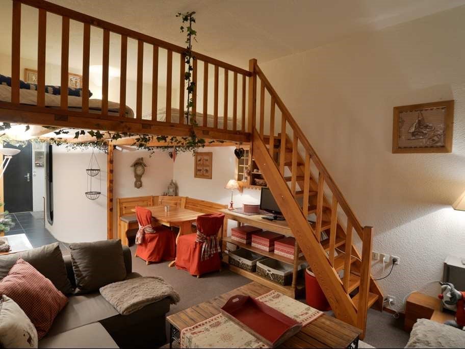 Studio je dispozičně řešeno jako mezanin a efektivněji tak využívá prostor nemovitosti. Nabízí obývací pokoj s jídelnou a kompletně vybavenou kuchyní. V mezipatře se nachází ložnice. Součástí je také balkon s krasnym výhledem na Les Arcs a hory. Výhodou je výborná poloha přímo u sjezdových tratí.